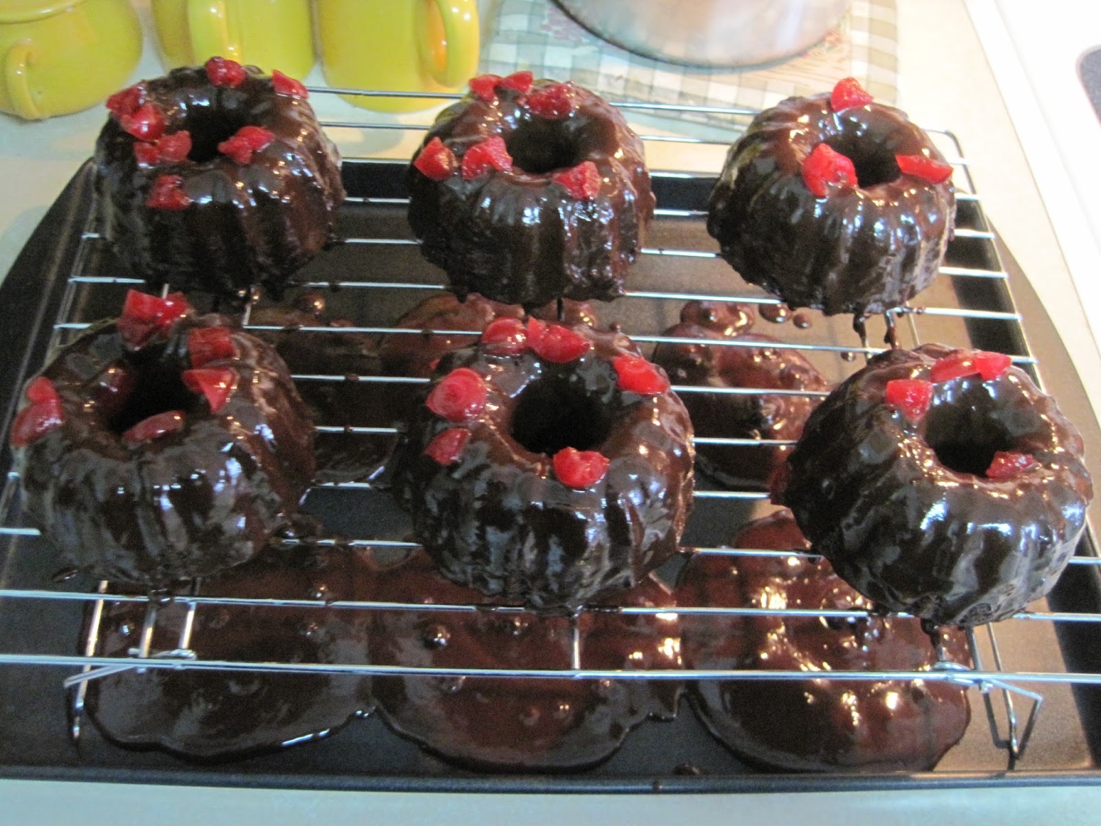 These are called Mini Chocolate-Cherry Bundt Cakes, and the recipe is from Food Network. I saw it on the Pioneer Woman show; I love Ree's recipes because as a rule they don't require unusual ingredients that I have to order from Amazon because no grocery in three states carries them. Her recipes use ingredients that I usually have or can get easily. These turned out really well and they're not difficult to make. The recipe should be here, if you've a mind to give them a go. The recipe does call for a special mini bundt cake baking pan; I found mine on Amazon (where else!).Wishing everyone the happiest of whatever holiday or holidays you celebrate -- and, as always, happy stitching!