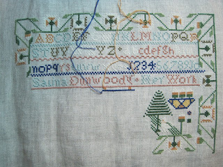 I also worked on Salina Dunwoody last weekend. The little dark blue line in the middle of the design is the start of the roof of a house. I do like this piece and need to buckle down and get her off the WIP pile.