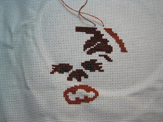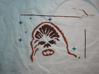 Today started out warm, but turned blustery and cold -- a perfect day to stitch the afternoon away. I worked on the wookie quite a bit. Here's how he looked last Sunday when I put him away: